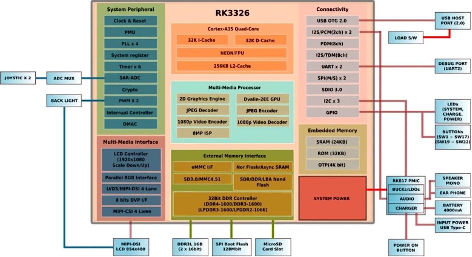 | Processor | CPU : RockChip RK3326(Quad-Core ARM 64bit Cortex-A35 1.3GHz) GPU : Mali-G31 MP2 |